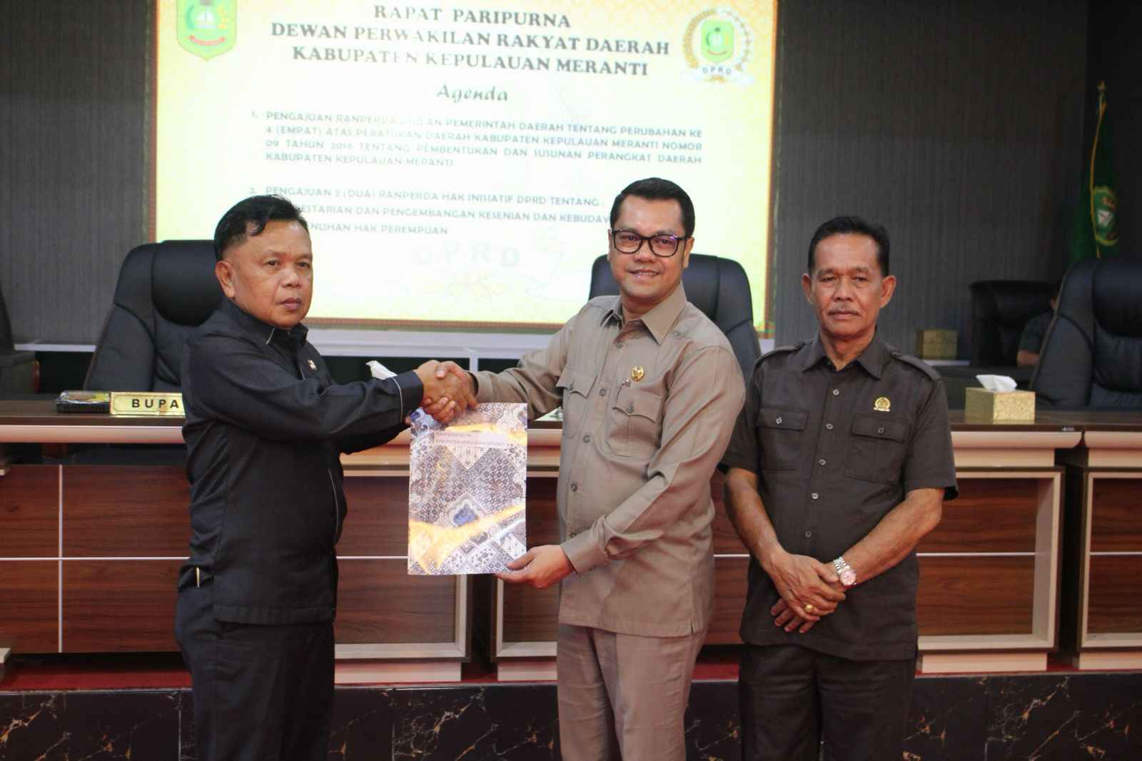 Adapun Ranperda inisiatif DPRD yakni Ranperda tentang Usulan Pemerintah Daerah Tentang Perubahan Keempat Atas Peraturan Daerah Kabupaten Kepulauan Meranti Nomor 9 Tahun 2016 Tentang Pembentukan Dan Susunan Perangkat Daerah Kabupaten Kepulauan Meranti.