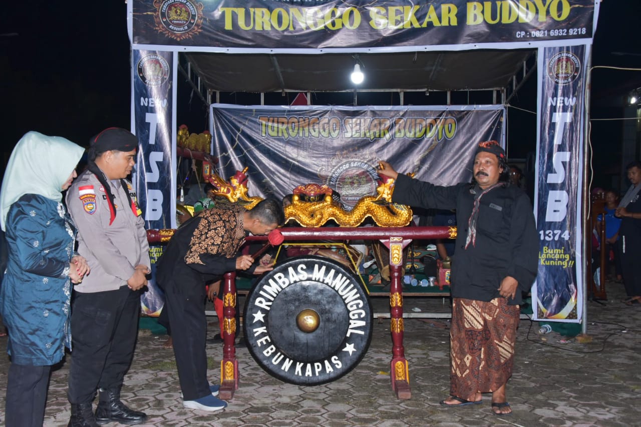 Tampak hadir Ketua Grup Kesenian Jaranan Turonggo Sekar Budoyo Bripka Deri Adrianto, Sesepuh Grup Kesenian Jaranan Turonggo Sekar Budoyo Siswo Atmojo, perwakilan dari Lurah Rimba Sekampung serta seluruh para tamu undangan terhormat lainnya.