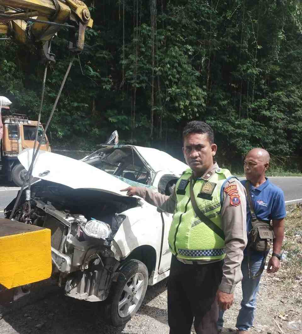 Kecelakaan terjadi ketika sebuah kendaraan dari arah berlawanan melaju melewati setengah badan jalan di tikungan. Untuk menghindari tabrakan, sopir Toyota Agya, Jumalianto (49), warga Tanjung Morawa, Kabupaten Deli Serdang, membanting setir ke kiri, mengakibatkan mobil terbalik hingga ke tepi jurang.