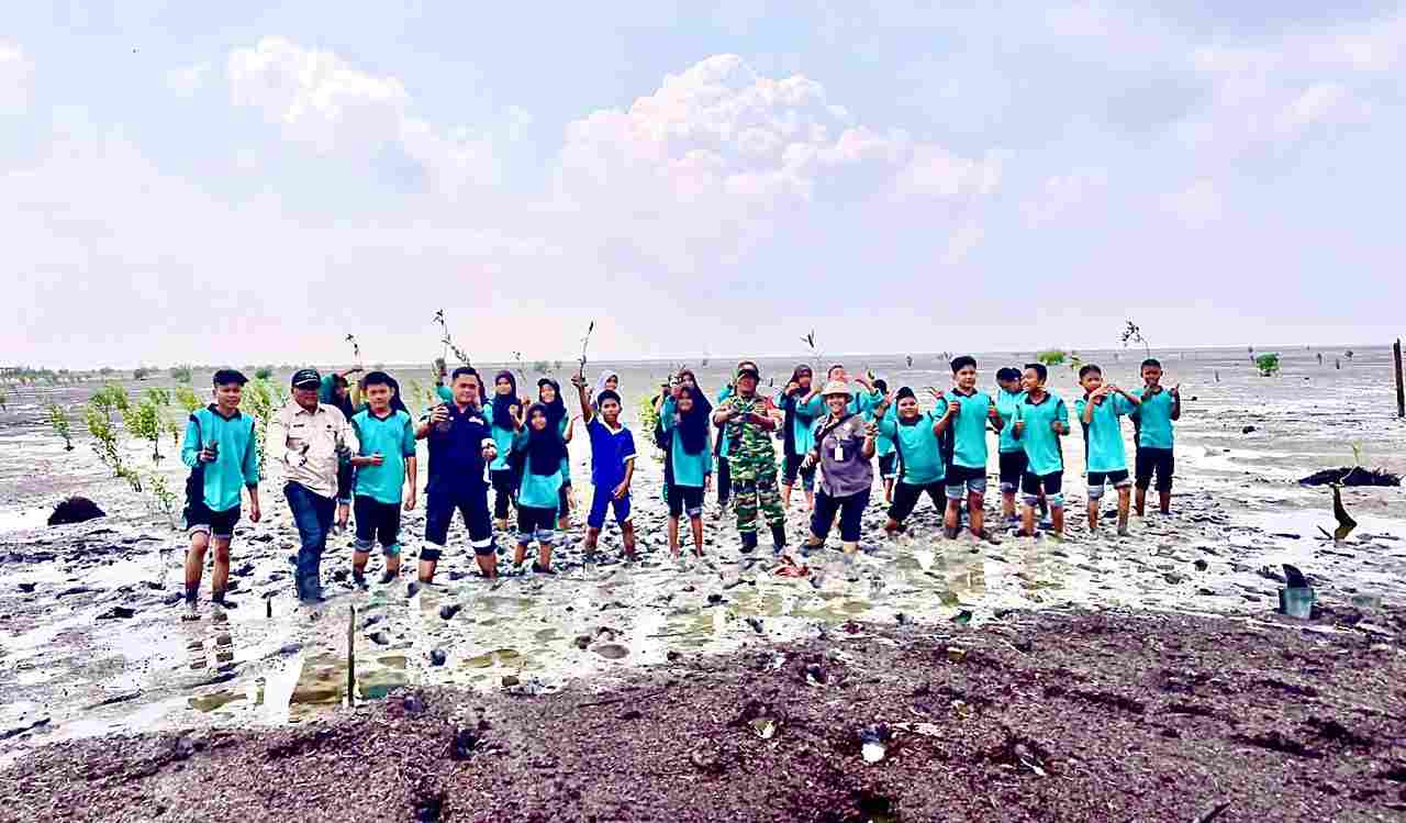 Setelah acara pembukaan dan penyerahan sembako secara simbolis, kegiatan dilanjutkan dengan penanaman mangrove di bibir pantai Desa Tanjungmedang.