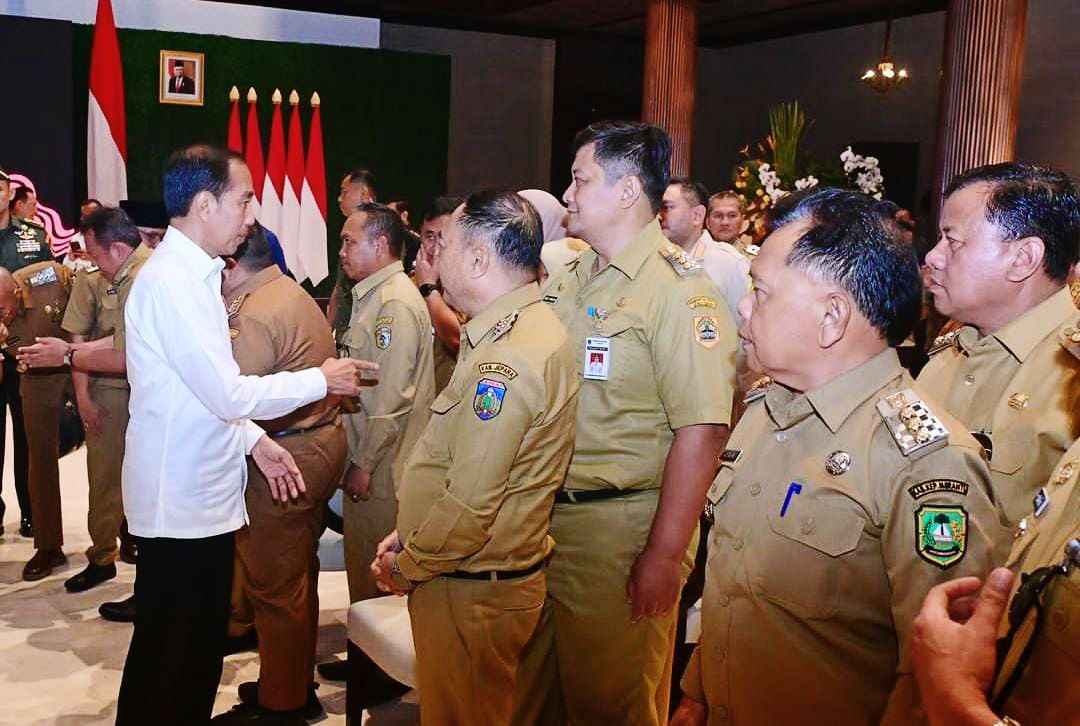“Dapat kami laporkan kepada Bapak Presiden bahwa jumlah kepala daerah saat ini, gubernur ada 38 orang, wali kota ada 98 orang, dan bupati ada 416. Total 552 orang. Hadir saat ini langsung 517 gubernur, wali kota, bupati, baik penjabat maupun yang definitif,” kata Tito.