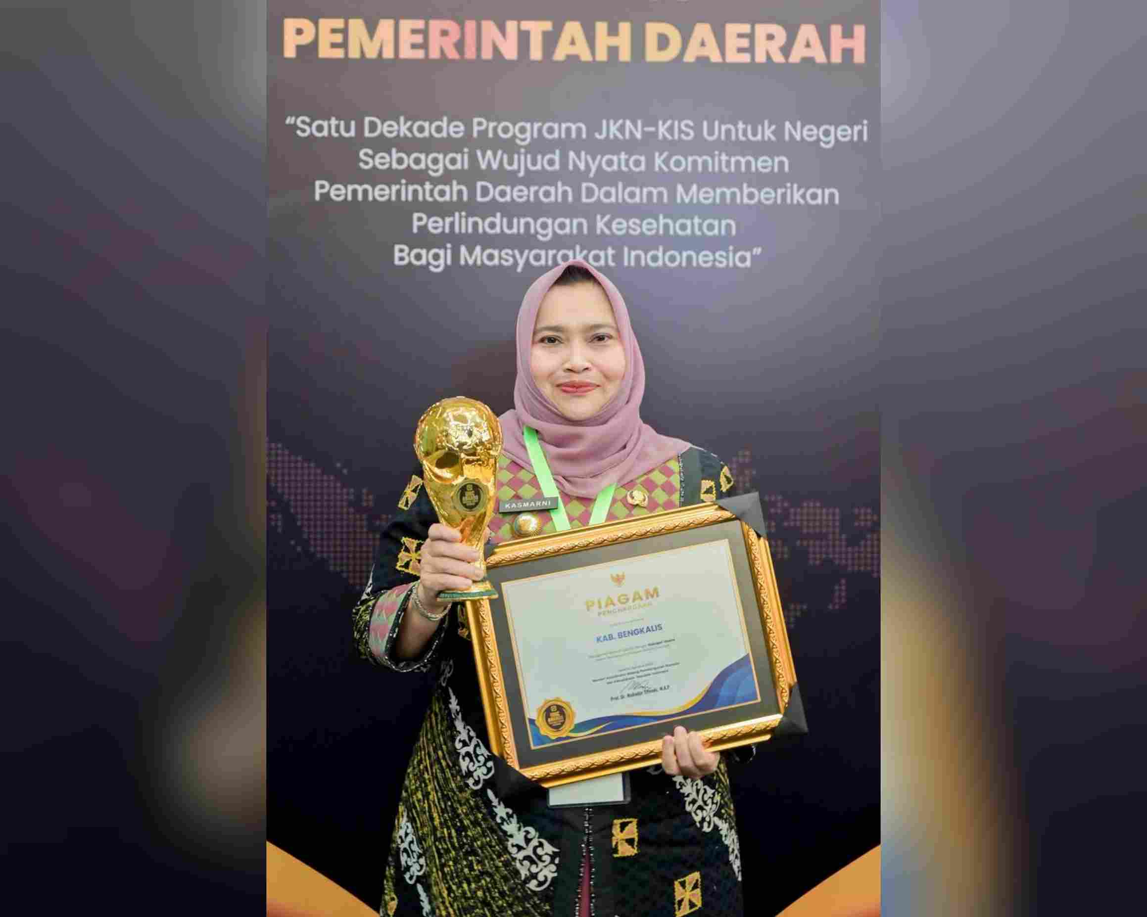 Untuk penghargaan Kabupaten Bengkalis, diserahkan langsung oleh Presiden International Social Security Association Muhammad Asman bersama Direktur Utama BPJS Kesehatan Ali Ghufron Mukti kepada Kasmarni sembari mengucapkan tahniah dan selamat atas diraihnya prestasi tersebut.
