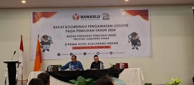 Deli Serdang, lexario.biz — Dalam rangka memastikan tahapan Pemilu Serentak 2024 berjalan lancar dan transparan, Badan Pengawas Pemilu (Bawaslu) Provinsi Sumatera Utara menggelar rapat koordinasi terkait pengawasan logistik pemilu, Rabu (10/10). Acara yang berlangsung di D’Prima Hotel, Batang Kuis, Kabupaten Deli Serdang ini mengangkat tema “Jujur dan Adil Perspektif Penyelenggaraan Pemilu dalam Pengawasan Logistik.”