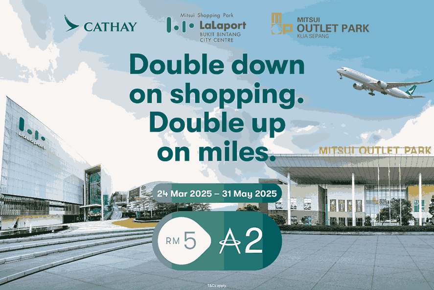 Untuk merayakan kemitraan ini, anggota Cathay dapat menikmati double miles (2 Asia Miles untuk setiap RM5 yang dibelanjakan) pada seluruh transaksi yang memenuhi syarat hingga 31 Mei 2025. Selain itu, anggota baru Cathay berkesempatan mendapatkan hingga 1.000 Asia Miles, dengan 300 miles bonus saat pendaftaran dan 700 miles tambahan setelah transaksi pertama.