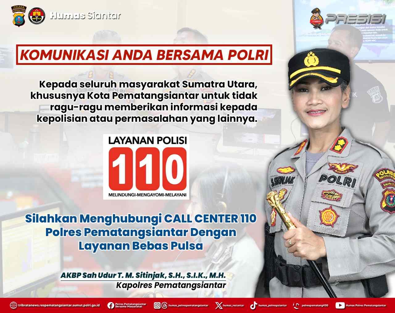 Imbauan tersebut disampaikan oleh Kepala Polres Pematangsiantar AKBP Sah Udur TM Sitinjak, SH, SIK, MH melalui Kasi Humas Iptu Agustina. Ia menjelaskan bahwa layanan 110 merupakan sarana resmi dari Polri untuk mendekatkan diri kepada masyarakat dan mempercepat respons terhadap situasi darurat.