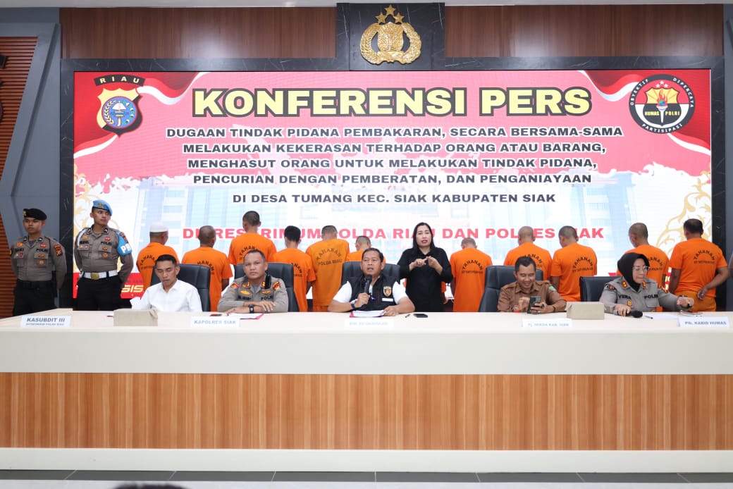 SIAK, lexario.biz – Kepolisian Daerah (Polda) Riau berhasil mengamankan 13 orang tersangka yang terlibat dalam aksi kerusuhan, pembakaran, dan pengrusakan fasilitas milik PT Seraya Sumber Lestari (SSL) di Desa Tumang, Kecamatan Siak, Kabupaten Siak.