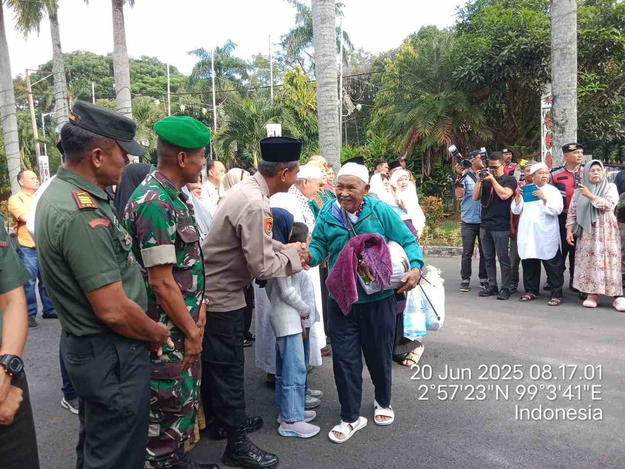 PEMATANGSIANTAR, lexario.biz – Kepulangan Jamaah Haji asal Kota Pematangsiantar yang tergabung dalam Kloter 7 Embarkasi Medan berlangsung aman dan kondusif, Jumat (20/6/2025) pagi. Pengamanan kegiatan tersebut dilaksanakan oleh Polres Pematangsiantar bersama Polsek Siantar Barat, bertempat di halaman Kantor Wali Kota Pematangsiantar, Jalan Merdeka, Kelurahan Proklamasi, Kecamatan Siantar Barat.