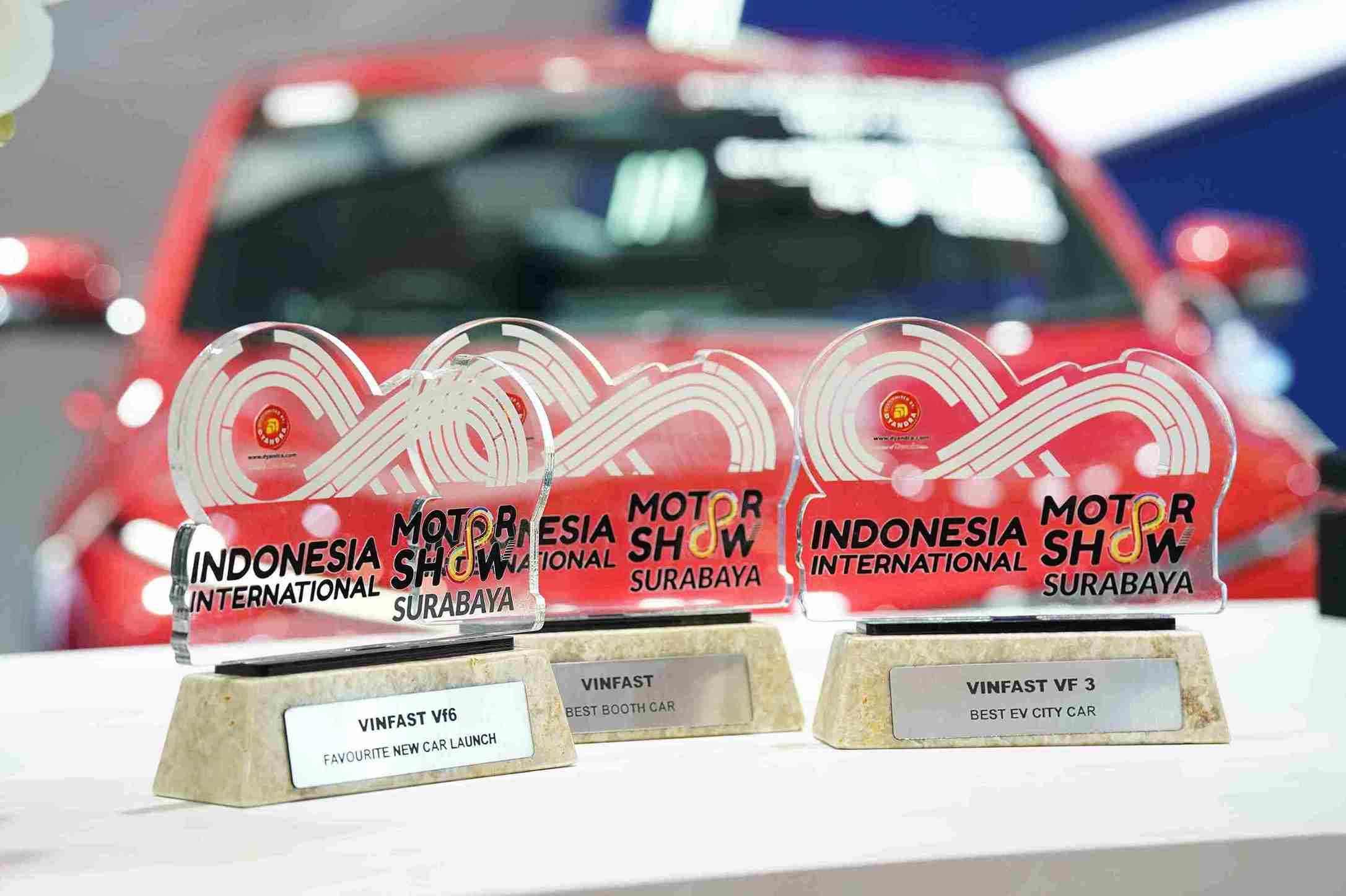 Keempat penghargaan yang diraih VinFast adalah “Best EV City Car” untuk VF 3, “Favorite New Car Launch” untuk VF 6, “Best Booth Car”, serta “Best Costume | Miss IIMS Surabaya 2025”. Penilaian dilakukan oleh panitia penyelenggara dan pengunjung pameran, dengan total suara mencapai lebih dari 50.000 pemilih.
