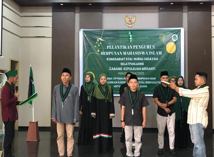 MERANTI, lexario.biz – Himpunan Mahasiswa Islam (HMI) Komisariat Sekolah Tinggi Agama Islam (STAI) Nurul Hidayah Selatpanjang periode 1446–1447 H / 2025–2026 M resmi dilantik pada Kamis sore (10/7/2025). Pelantikan yang berlangsung di Gedung Kuning, Jl. Dorak, ini mengusung tema “Optimalisasi Kepemimpinan Demi Mewujudkan Kader Berintelektual Berkualitas untuk HMI Berdaya Saing.”