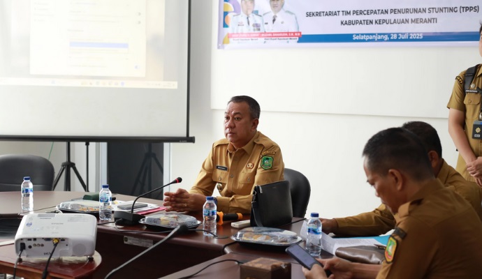 MERANTI, lexario.biz — Wakil Bupati Kepulauan Meranti, Muzamil Baharudin, S.M., M.M., secara resmi membuka kegiatan Rapat Koordinasi Tim Percepatan Penurunan Stunting (TPPS) Kabupaten dan Kecamatan serta Sosialisasi Aplikasi Aksi Bangda bagi operator verifikator dan approval TPPS Kecamatan. Kegiatan tersebut digelar di Ruang Rapat Bappedalitbang, Senin (28/07/2025).