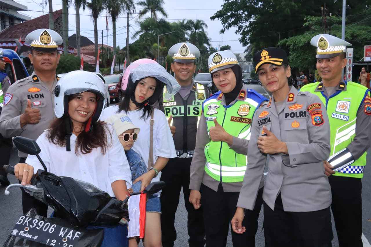 Selain bendera, helm juga dibagikan sebagai bagian dari kampanye keselamatan berlalu lintas. Melalui langkah ini, Polres Pematangsiantar ingin mengedukasi masyarakat agar lebih peduli terhadap keselamatan saat berkendara.