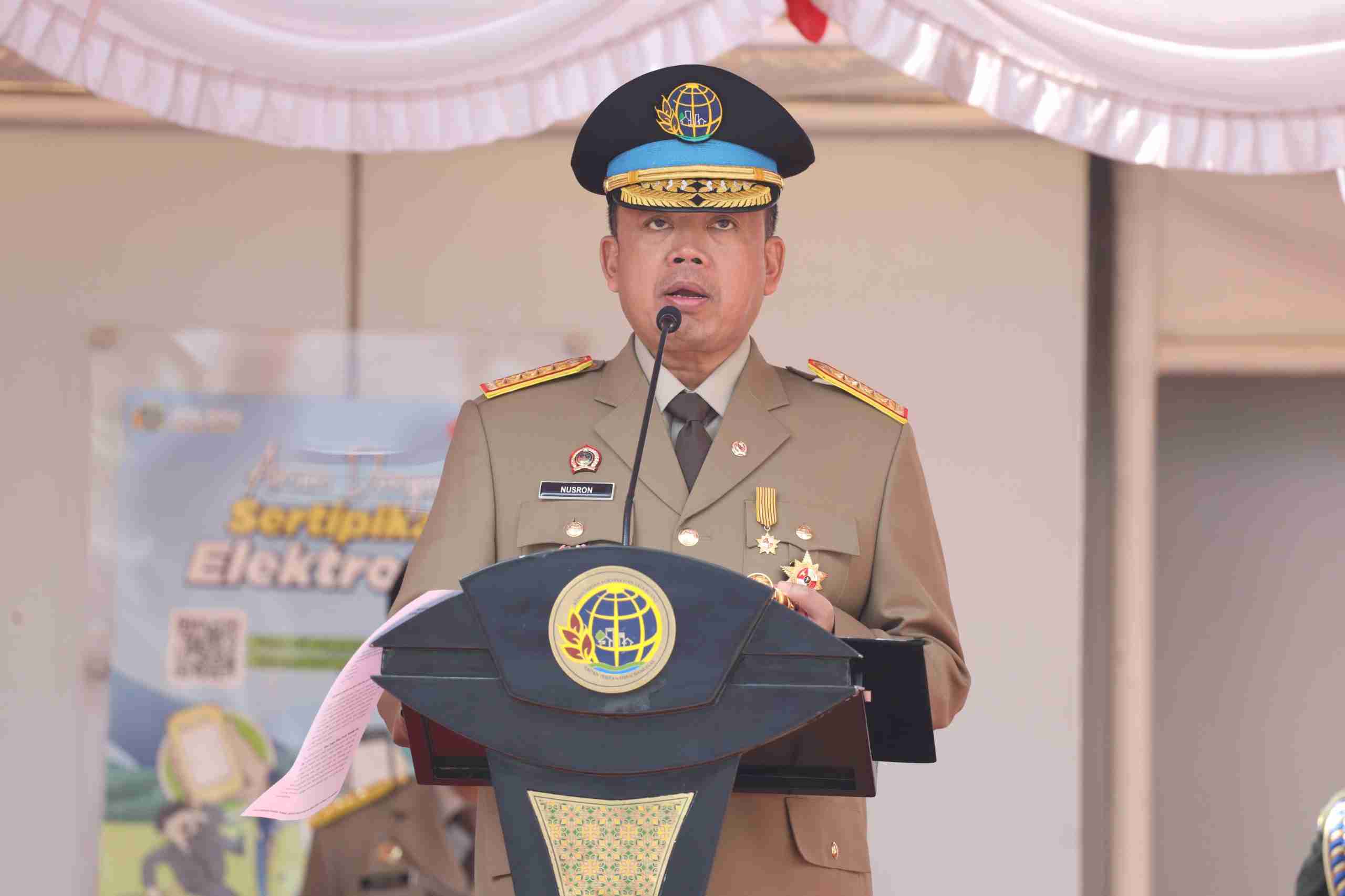 Menteri ATR/Kepala BPN, Nusron Wahid, yang bertindak sebagai inspektur upacara, menegaskan pentingnya kebijakan agraria dan tata ruang yang dapat memberikan manfaat nyata bagi rakyat.