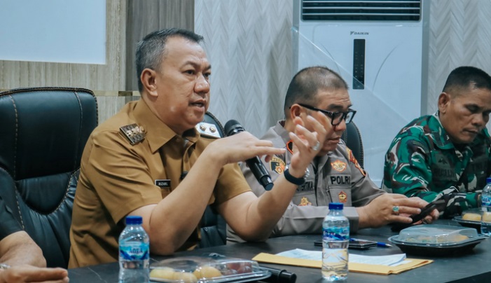 Konferensi pers ini turut dihadiri oleh jajaran Forum Koordinasi Pimpinan Daerah (Forkopimda) Kabupaten Kepulauan Meranti, antara lain: