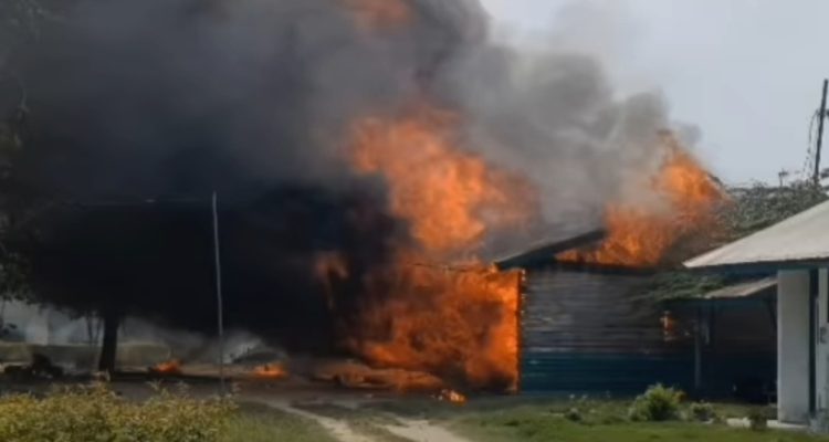 Situasi Memanas, Massa Bakar Pos Keamanan dan Rumah Karyawan PT SSL di Tumang Siak